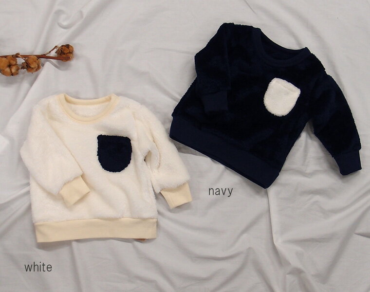 『素材』 身生地: 首・袖・裾 ポリエステル 綿 ポリウレタン 100% 95% 5% 洗濯表示 タイプ:トップス・ベスト『3℃〜9℃』 A B C D E 着丈 AH 胸周り 裾周り 袖丈 80cm 35 15 29 27.5 26 90cm 36 15 30 29 27 95cm 39 16 32 29 28 100cm 41 17 33 31 29 お使いのデバイスにより、実際の商品と 色が異なって表示される場合がございます。 【お急ぎの方は・・・】 当店は、全品おまかせ配送となります。 宅配便をご希望の方・お急ぎの方は「お急ぎチケット」をご購入ください。商品と同時購入で、宅配便に変更させていただきます。 お急ぎチケットはこちら よくある質問(F&Q)マシュマロみたいなミラクルファーのトレーナー 首は伸縮性がいい素材を使用しているのでかぶりになっています。 スポっと頭から着ることができるので、とても便利です。 シンプルなのに、これ1枚でおしゃれに着こなせますよ ファーストセパレートとして出産祝いに贈られても喜ばれそうですね 特に海外製などは、量産するため裁断するのに生地を何枚も何枚も重ねて、上からいっきに裁断します。 なので、部分的に、斜形したりします。(目地が斜め向いたりする) だから、何回か、お洗濯しただけで、よれたりしてくる商品も多いです。 でも、当店は、日本製ならではの丁寧さにこだわって、1枚1枚、熟練の裁断士が丁寧に裁断しています。 縫製は、大阪近辺で、ベビー服一筋の縫製工場で、熟練の職人さんたちに頼んでいます。 海外製品に比べて、日本製は縫製の手もきれいで、また環境下にも気をつかっています。 完成した製品は、大阪市内にある当社にて保管しています。