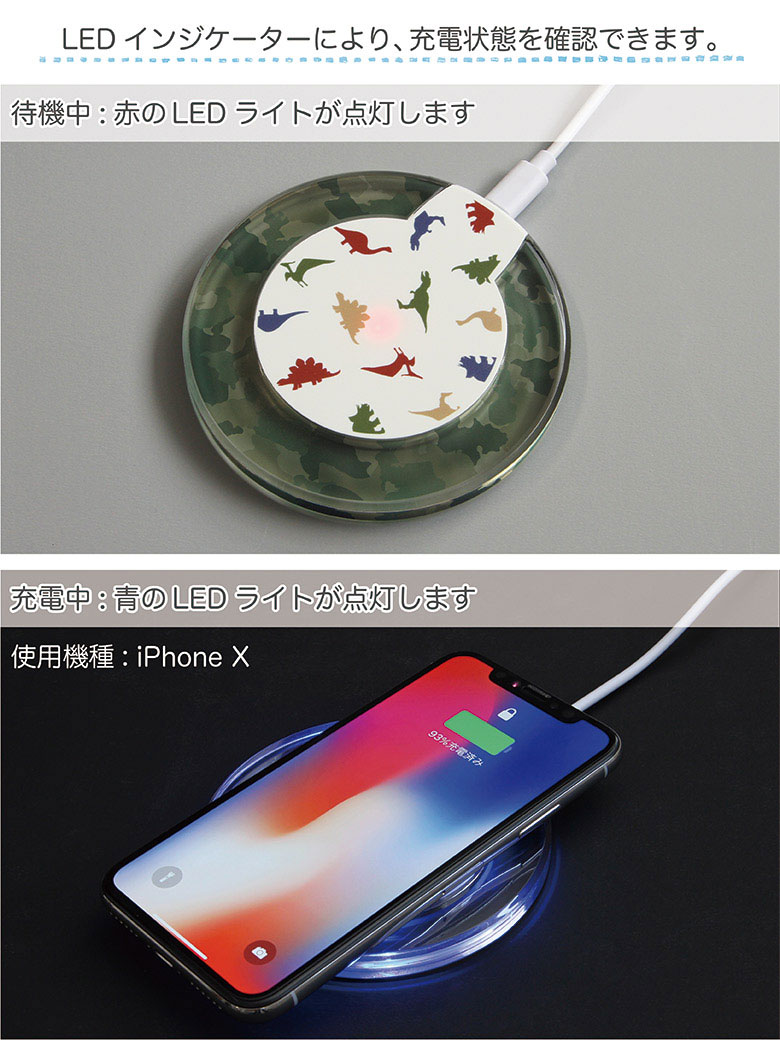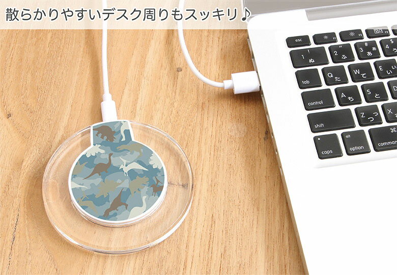 (SSクーポン配布中) 当店オリジナル商品 DINOSAUR ワイヤレスチャージャー 置くだけ充電 スマートフォン iPhone X iPhone8 iPhone8 Plus Galaxy ダイナソー 恐竜 カモフラ 迷彩柄 オシャレ グリーン 可愛い クリア 丸型 無線 便利 メンズ レディース
