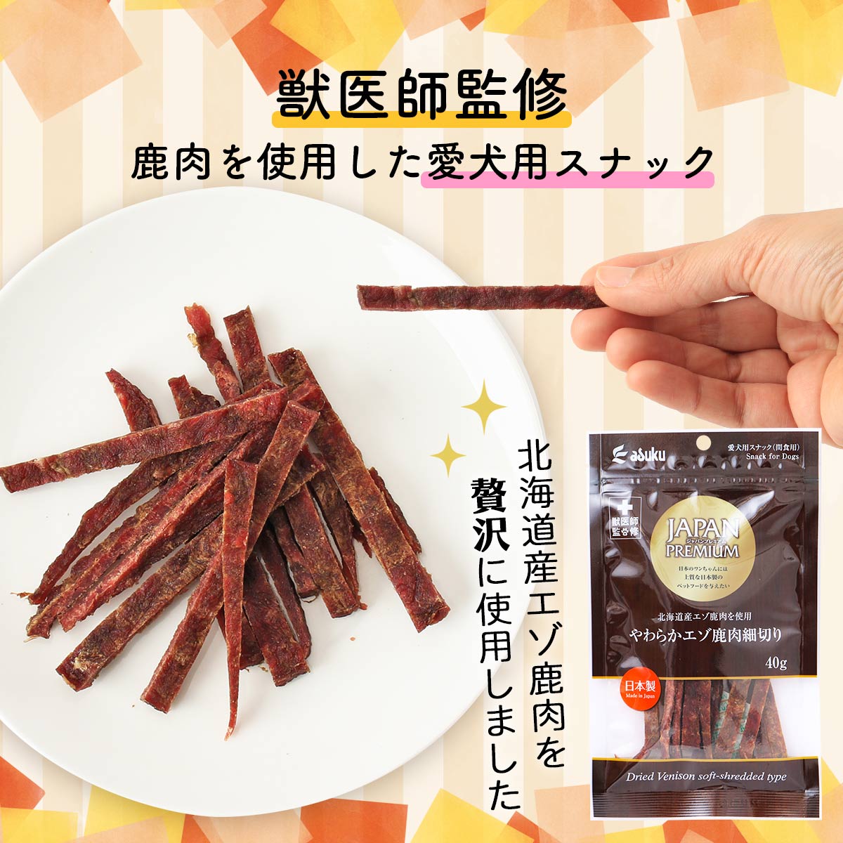 [アスク] 愛犬用スナック(間食用) JAPAN PREMIUM(ジャパンプレミアム) やわらかエゾ鹿肉細切り 40g /ペット用 おやつ 国産 日本製 獣医師監修 シカ肉