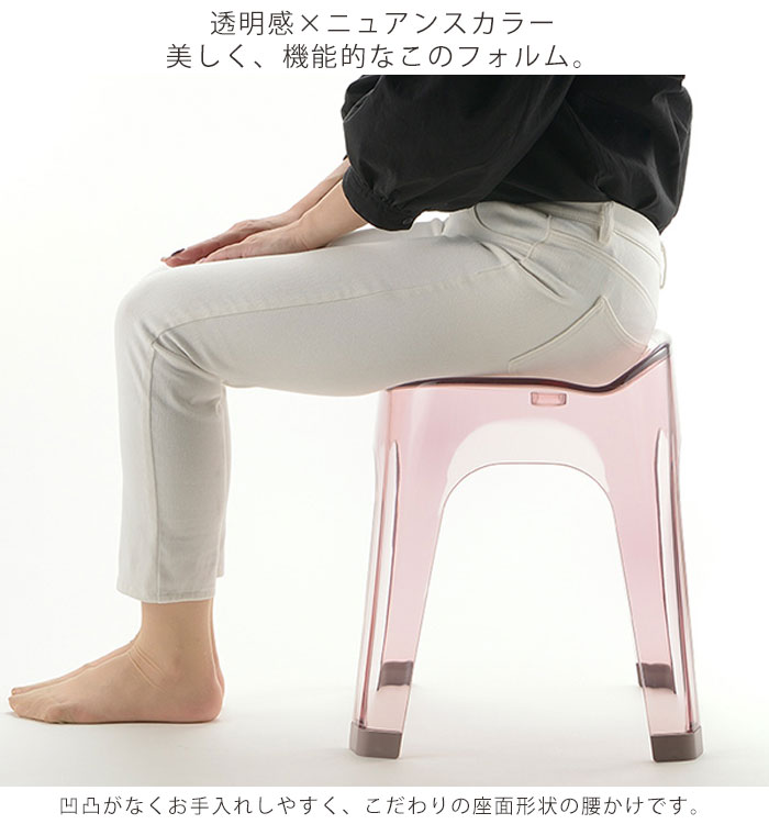 商品説明商品詳細●凹凸がなくお手入れしやすい、こだわりの座面形状の風呂椅子です。●透明にくすみ感をプラスした、うるつや大人ナチュラルカラーが美しく、高級感と上品さを演出するカラーラインナップです。●浴室カウンターの高さや入浴スタイルに合わせて3サイズの高さから選ぶことが出来ます。●幅広な座面なのでゆったり座ることが出来ます。●身体との接地面が多いことで安定性があり、座り心地の良さに繋がります。●座面のカーブが、しっかりと面でお尻にフィットさせます。●4本脚なので空気が流れやすく通気性が良いです。●ゴム足付きなので浴室の床の傷つけにくいです。●カラーはグレー、ブラウン、ピンクの3色があります。サイズ約幅38×奥行33.5×高さ39(cm)材質本体:PETゴム脚:ポリエチレン生産国日本製備考耐熱温度/本体・ゴム脚:70℃耐荷重/100kg注意※他のサイトも運営しておりますのでタイミングにより在庫切れの場合は改めてご連絡いたします。※商品撮影にはデジタルカメラを使用しております。色彩再現には最善を尽しておりますが、お使いのモニタ環境によって多少異なる場合があります。 ※掲載商品と実際の商品とは、色・柄の出方が多少異なる場合があります。