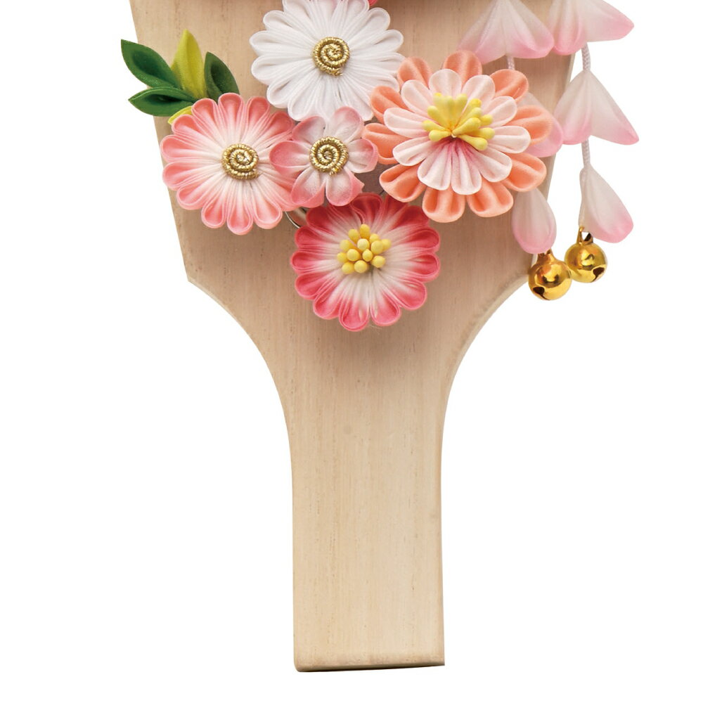 羽子板単品 みうかんざし7号 羽子板高さ:約210mm お花のかんざしがついた可愛らしい印象の、プレゼントにも喜ばれている大変お洒落な羽子板です。 お部屋のインテリアとしても楽しめます。 ◆こちらの羽子板のつまみ細工は取り外す事ができます。七五三やフォーマルな衣装にぴったりです。※こちらの羽子板は単品です。羽子板の飾り台はこちらからお買い求め頂けます。★ご購入特典★名入れ木札をプレゼント!入力欄にお子様のお名前と生年月日をご入力下さい。ご面倒なお手続き等は一切必要ありません!納期はご注文から7-10日ほどかかります。ご注文の節句商品とは別送になることもございますのでご了承下さい。メール便の為日時指定は承れません。※名入れ木札に入れられるお名前は1名様分となります。商品到着後にレビューを書いて下さったお客様にハンドタオルをプレゼントいたします。皆様のレビューをスタッフ一同心よりお待ちしております。ナチュラルでモダンな印象の羽子板です。お部屋のインテリアとしても楽しめます。 羽子板の時候と由来羽子板は女児の初正月を祝い、邪気を跳ね(羽根)除け美しく無事成長することを願うための大切な飾りです。羽子板・羽根突き自体は室町時代にはあったとされており、その後、女の子の正月遊びとして定着するようになりました。また、羽根突きに使う羽根の形が蚊を食べるトンボに似ていることから、蚊が病気を媒介することを認識していた昔の人々は羽根をトンボに見立てました。そのことから蚊はトンボを恐れ、ひいては子供が蚊に刺されないという厄除けのまじないとして、正月に羽根突きを行っていました。また、羽根突きの玉には「ムクロジ」という木の、黒くて固い種子が用いられています。漢字で「無患子」と書き、字のごとく「子供が患わ無い」という意味が込められており、羽子板が無病息災のお守りになった由来です。現在のように、装飾品として扱われるようになったのは、江戸時代の後半に歌舞伎舞踊を題材にした押絵羽子板が作られるようになってからです。今日では、その羽子板を華やかな飾りのガラスケースに収めて、女の子の初正月に飾るようになりました。
