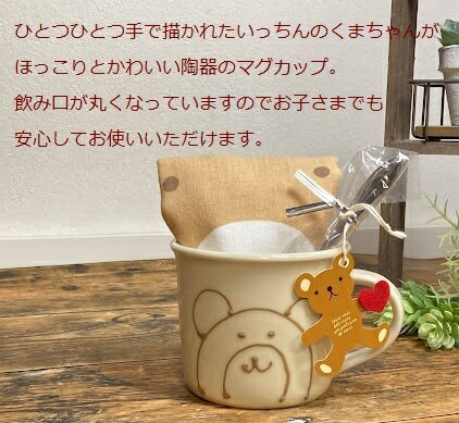 【この商品は次の用途に適しています♪】 出産内祝い 内祝い 出産祝いギフト 結婚祝い 結婚内祝い 新築祝い 新築内祝い 快気祝い 快気内祝い 引き出物 入学祝い 入学内祝い 返礼 プレゼント 陶器の食器 マグ くまマグ 子ども用マグ クリスマスギフト お誕生日ギフト ギフト対応についてはこちらをクリック☆ 離乳食からお箸も持つまで こどもの成長に寄り添う食器。 ご自宅用はもちろん、ギフトアイテムとしても かわいさを発揮します♪ ◆仕様 ---------------------------------------- ■こぐまマグx1個 ---------------------------------------- サイズ:直径73x97x67H mm 140cc 材質:磁土 ---------------------------------------- ●くまガーゼタオル ---------------------------------------- サイズ:23・5x20cm 素材:綿100% 日本製 ---------------------------------------- お花のスプーンx1 ---------------------------------------- ◆ラッピングサイズ: 10x9xH15cm (高さはリボンも含む)かわいいおうちの中にはくまちゃんのマグカップ・ スタイにもなるガーゼタオル・お花のスプーンが入ってます♪