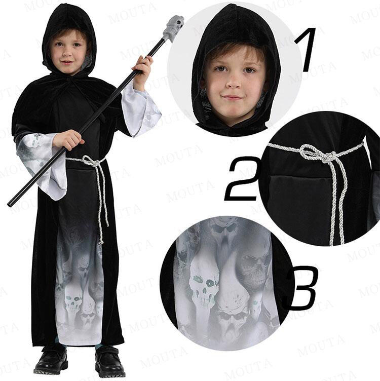 ハロウィン 死神 サタン 悪魔 コスチューム 悪魔 子供用 衣装 子ども 男の子 女の子 コスプレ 仮装 キッズ ジュニア 死神 コスチューム 仮装 変装 イベント パーティー 舞台服 文化祭 学園祭 新年会 小悪魔 演劇 演出服 シニガミ 新年会 万聖節 110 120 130 140 送料無料