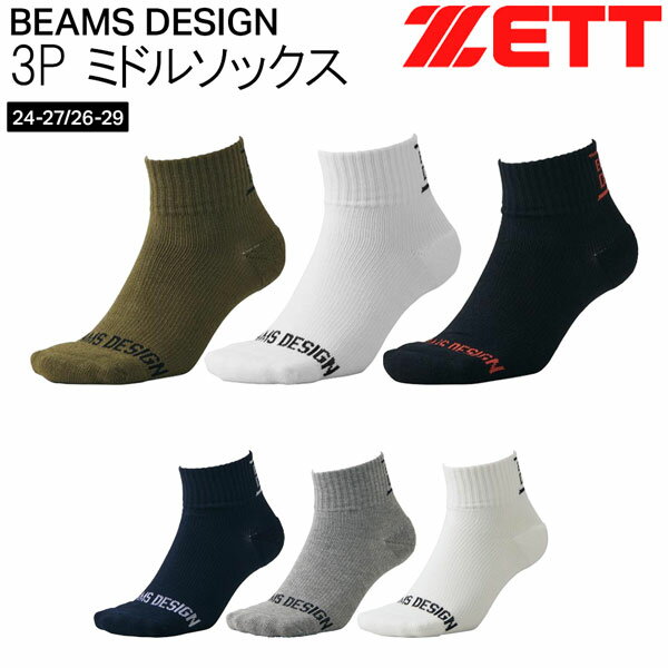 ゼット ビームスデザイン 3足組 ソックス ZETT BEAMS DESIGN 3P ミドルソックス カジュアル 野球 限定品