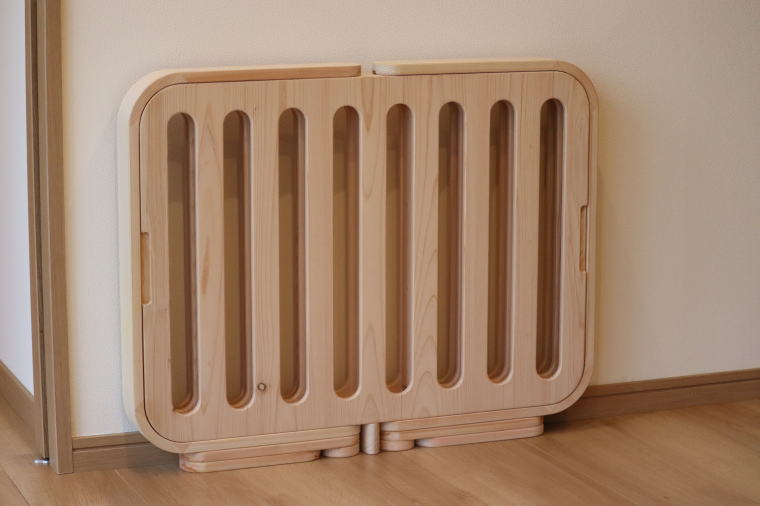 「プレミアムコレクション」 ファーストドッグゲートがいよいよ完成いたしました。 オリジナルブランド【HAKUSAN】。 ブランドを立ち上げた訳とは? 【つむぐデザイン】のページ作成は1stDogCafeの CEOことセオがお手伝いさせて頂いてます。 今回1stDogCafeの商品の一部もつむぐデザインで 一緒に展開していきます!!。 そして人気のある商品から つむぐデザインオリジナルの商品を 作っていく予定ですYO(笑)。 下記1stDogCafeの コピーとほぼ一緒ですが(さぼっているわけ ではありません(笑))、基本どのお店でも お伝えしたいことは同じなので、東で、 間違えた(笑)、そのまんまださせて頂きます。 ----------------------------------------------- 1stDogCafeは、基本的には 北欧を中心としたヨーロッパやアメリカ、カナダ などから商品を輸入、そして販売をしてきて いるのですが、少しずつ海外のブランドとも 弊社が企画して商品化されることも多くなって きました。 そんなときに漠然と思ったのが オリジナルブランドを作りたいな〜ということ。 そして、輸入だけではなく自分達のブランドを 世界に向けて少しずつ発信していきたいと いうこと。特に海外での展示会に行った際に ここに自分達のブランドを展開出来たら スンバラシイことだな〜、出してみたいな〜と 思っておりました。 しか————————し、 やはり様々な商品を一気に展開するには お金も時間もかかり、チキン野郎(笑)なので やっぱり怖いですし(笑)、現在の輸入の仕事を メインにしながらだと時間的にも結構厳しいの ですが・・・・、 なんだかんだで1stDogCafeを立ち上げてから 既に10年以上も経っていますし、元々は輸入ではなく 犬用の家具や商品も企画、製造、販売も していましたし(知ってました(笑)?)、 そろそろやらないと一生やらないんじゃねぇ(笑) って思いますて、思い切って立ち上げたのが 【Hakusan】。 ブランド名は特に最初決めていなかった のですが、商品の企画をしているときに ブランド名を決めなきゃって話になりまして、 ドッググッズだけでなく人間用のアウトドア グッズや衣類などもやっていきたいよね〜って 話から、弊社がある軽井沢から見える【浅間山】、 もしくは本社がある石川県の【白山】の どっちかがいいじゃないの?ってことで、 既に浅間は新幹線があるので(笑)、 【Hakusan】となりました。 実は話が出てから数分で決まったという(笑)、 即決ネーム(笑)です。 Hakusanは、人と犬とが毎日ワクワク 生活できるための商品をご提案したいと 思っております。 「ドッグゲートを作りたい!!」。その想いを実現できたのは デザイナーとの出会いが大きかったです。 そもそも1stDogCafeのスタートは 国産の犬用家具だってことを知っている人は ほとんどいないと思いますが(笑)、実は 犬小屋やトイレ、食器台などを無垢材で作り、 国内の職人さんに作ってもらっていたのが スタートなのです(笑)。 ただ、職人さんが家具製作をやめられたり 様々な要因もあり、しばらくは犬用家具の 製作はストップしておりました。 それからかなり年月が経っておりますが、 やっぱりその情熱がなくなることはなく、 犬用家具の展開はなんとかやりたいと 思っておりました。 実は、犬用家具はストップしておりましたが、 フィンランドにある高級家具ブランドNikariの 日本代理店になったりもしておりまして、 北欧家具などを中心に家具への関りは 途切れることなく続いておりました。 そんなときにふと 「デザイナーを見つけることができれば 北欧で家具を作ってもらえるかも?」と 閃きまして(笑)、いろんなデザイナーさんの 家具をチェックし、偶然ポルトガルの 若きデザイナーの家具デザインに 惚れまして、早速コンタクト。 デザイン料など様々な問題が ありましたが、1個ずつクリアしていき 今回デザインしてもらうことが できました。 そのときにデザイナーに フィンランドで作るより日本国内で 作った方が輸送費がかからないのでは? と言われ、確かにフィンランドでの 製造にこだわる必要もないな~と思い、 今回石川県にある工房に製造を依頼して おります。 まず第1弾は ヨーロッパデザイン、 ジャパンメイドの シンプルで機能的な ドッグゲートとなります。 使用しないときは小さく畳むことができます。 両サイドを広げることができてサイズ調整可能。引き戸のような美しいデザインでゲートの稼働をしなやかにします。 ヒノキ材を使用して、細部までこだわる職人技が随所に確認できます。 シンプルで使いやすい置くだけドッグゲート。 両サイドを引くだけでサイズを調整できます。 ファーストドッグゲートの こだわりはシンプルなデザイン。 北欧家具のようなシンプルな デザインは本当に美しいの一言。 まさにこれは「家具」です(笑)。 両サイドに引き戸がついているので ゲートの幅の調整も自由にできます。 写真のようにいろんなサイズに 調整ができるので、場所に合わせて サイズを調整してお使いいただけます。 また