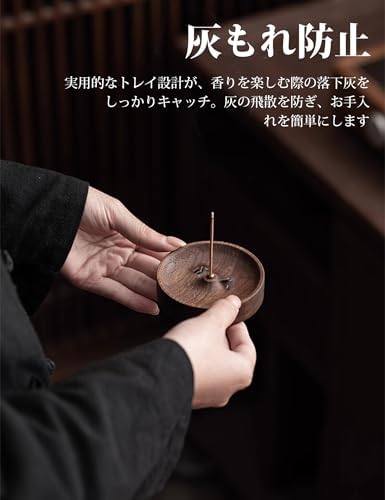 香りを楽しむ際の落下灰をしっかりキャッチし、灰の飛散を防ぐ実用的なトレイ設計。ペットやお子様のいるご家庭でも安心してご使用いただけます。滑らかな研磨表面は香灰の付着を防ぎ、お手入れが簡単。付属のブラシで払うか、水洗いするだけで清潔を保て、日々のメンテナンスも簡単です。天然木材の温もりと美しい木目を引き立たせる職人の手工研磨仕上げ。縁は滑らかに面取りされ、手に取ると心地よい使い心地。約7.8×7.8×1.8cmのミニサイズで、香穴の内径は3mm。コンパクトで軽量なため、携帯に便利。読書、瞑想、仕事の合間のリラックスタイムなど、あらゆる場面で安らぐ香りをお楽しみいただけます。香りを楽しむ際の落下灰をしっかりキャッチし、灰の飛散を防ぐ実用的なトレイ設計。ペットやお子様のいるご家庭でも安心してご使用いただけます。滑らかな研磨表面は香灰の付着を防ぎ、お手入れが簡単。付属のブラシで払うか、水洗いするだけで清潔を保て、日々のメンテナンスも簡単です。天然木材の温もりと美しい木目を引き立たせる職人の手工研磨仕上げ。縁は滑らかに面取りされ、手に取ると心地よい使い心地。約7.8×7.8×1.8cmのミニサイズで、香穴の内径は3mm。コンパクトで軽量なため、携帯に便利。読書、瞑想、仕事の合間のリラックスタイムなど、あらゆる場面で安らぐ香りをお楽しみいただけます。