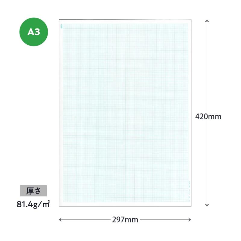 SAKAEテクニカルペーパー グラフ用紙 A3 1mm 方眼 上質紙 50枚 アイ色 A3-01用紙サイズ297mm×420mm紙質上質紙81.4g/m2その他独自に開発された寸法安定性に優れた正確な用紙で、ECF(無塩素漂白)パルプを使用していますので、燃やしてもダイオキシンを発生させない環境対応のエコ製品です。罫線は微細で、伸縮も少ないので正確な記録が出来ます。平滑性が高く、鉛筆やペンなどの筆記具でシャープな線が描けます。