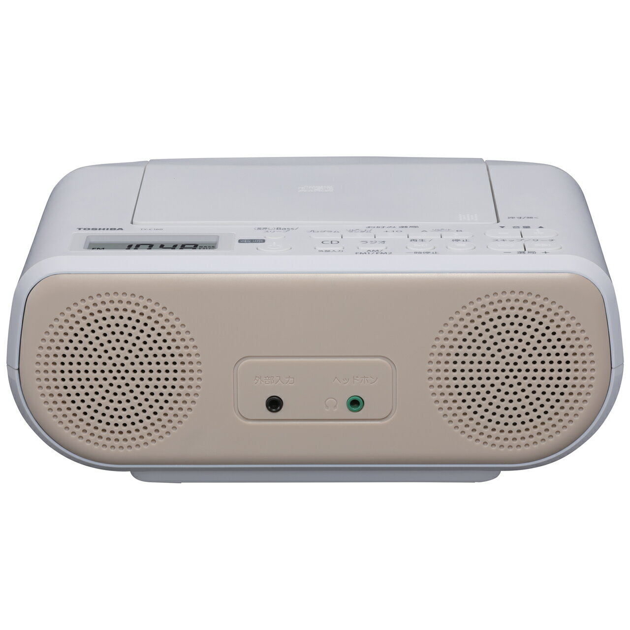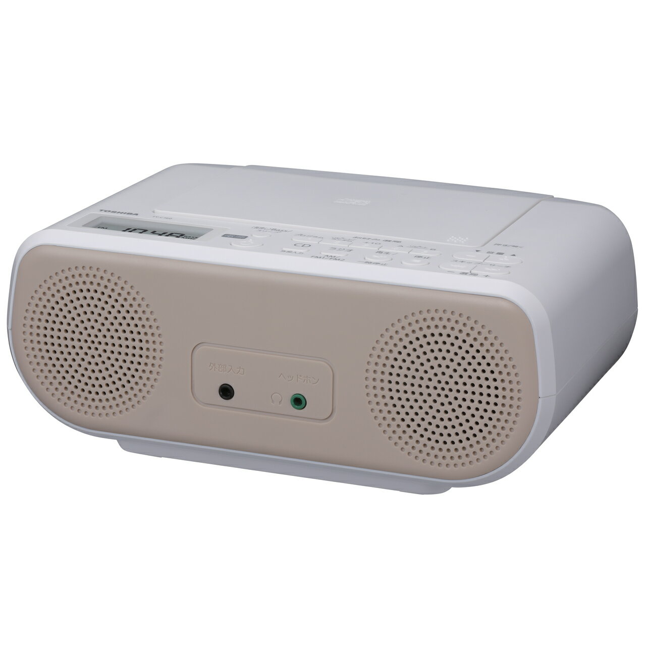 ※こちらの商品は外箱にスリキズ、ヘコミ、シール剥がれ等がある梱包B級品となります。未開封の新品でメーカー保証1年付きとなります。■軽くてコンパクトコンパクトなボディに便利なハンドルつき。手軽に持ち運んで使用できます。■語学学習に便利な機能が充実!「リピート」「プログラム」「ランダム」再生機能はもちろんのこと、CDを止めて電源を切っても続きから再生できる「レジューム再生」機能や、聴きたい場所を繰り返し再生する「A-Bリピート」、CDの10トラックずつスキップできる「+10スキップ」など、コンパクトながら語学学習に便利な機能が充実しています。■Bass機能搭載。高音質スピーカーで聴きやすい!1.5W+1.5Wのスピーカー搭載でしっかり大音量で聴きやすいことに加え、「Bass」機能を搭載。音楽鑑賞時、お好みに応じて低音を強調できます。■お好み選局ボタンでラジオ選局もかんたん!ボタン一押しで登録もらくらく!ラジオ選局が簡単にできます(AM2局/FM10局)。■便利なスリープタイマー付 最大120分まで設定できる「スリープタイマー」付き。設定した時間になると、自動的に電源が切れるのでおやすみ時にも安心です。■使える外部入力端子外部機器を接続し、本体のスピーカーで音楽を楽しめます。【CDプレーヤー部】●チャンネル数 2チャンネルステレオ●サンプリング周波数 44.1kHz●メディア CD、CD-R/RW(CD-DAフォーマットで記録された音楽ディスク)【ラジオ部】●受信周波数 FM:76.0〜108.0MHz(0.1MHzステップ)、AM:531〜1,710kHz(9kHzステップ)【共通部】●電源 AC100V 50/60Hz、単3形乾電池×6本(別売)●電池持続時間(*) TOSHIBA単3形アルカリ乾電池使用時、CD再生時:約3時間、ラジオ受信時:約14時間●スピーカー φ5cmコーン型×2●実用最大出力(*) 1.5W+1.5W●入力/出力端子 外部入力/ヘッドホン出力:φ3.5mmステレオミニジャック●消費電力(*) 10W●最大外形寸法 230(幅)×92(高さ)×213(奥行)mm (突起物含まず)●質量 約1.1kg(乾電池含まず)●付属品 電源コード、保証書付取扱説明書※仕様及び外観は改良のため予告なく変更する場合があります。※1:(*)印は(一社)電子情報技術産業協会の定める「JEITA規格」による測定値です。※2:電池持続時間の目安は、東芝アルカリ電池IMPULSE LR6Hを使用した場合です。TYC160CコンポウB
