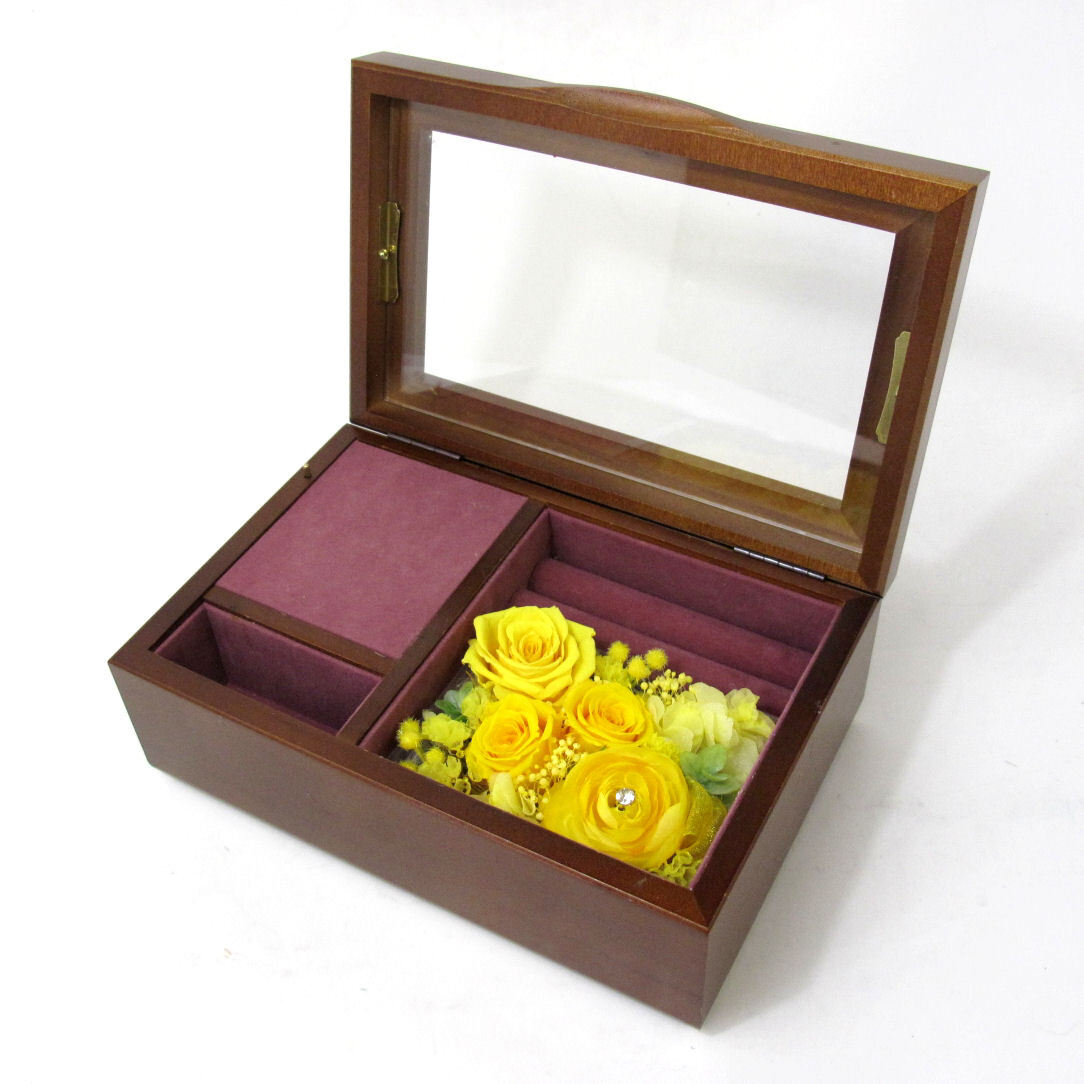 【お好きな曲で30弁オルゴールを製作します】木製宝石箱OR061 30Nタイプオルゴール〜プリザーブドフラワ-&アートフラワー付〜 イエロー 約1000曲から選べる 曲目リストの30Nタイプからお好きな曲を選べます 花 プレゼント 好きな曲 贈り物 ギフト 誕生日 結婚祝い