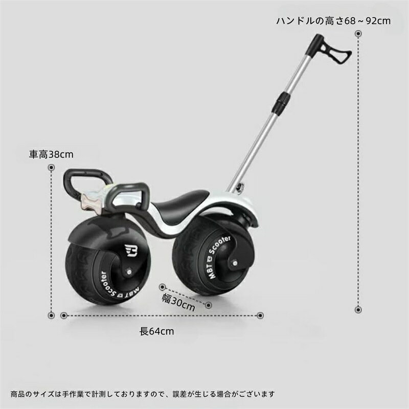 【多機能スクーター】かわいい外観、滑らかなライン、明るい色は、赤ちゃんの注意をすぐに引き付け、赤ちゃんの探検意欲を刺激します。赤ちゃんのバランス感覚の発達に役立ち、親は押しハンドルを使って赤ちゃんに乗り方を教えることができます 【安定設計】特殊な低重心構造により、運転中に車両のバランスを保ち、横転のリスクを大幅に軽減します。赤ちゃんが乗っているときに急カーブや凸凹道に出くわしても、自転車は安定した状態を保つことができるため、親は心配する必要がなく、赤ちゃんに乗る楽しさを味わわせることができます 【軽量で旅行に便利】旅行、買い物、散歩、公共交通機関の利用時にも持ち運べるので、いつでもお子様と遊び始めることができます。重さとはお別れして、この軽量おもちゃの車で親子の旅行をより便利で楽しいものにしましょう 【高品質の素材】ベビーカーの本体は環境に優しく、無毒で、頑丈で耐久性があるだけでなく、鋭い角がなく、赤ちゃんを傷つけません。同時に、この素材は耐衝撃性に優れており、誤ってぶつかっても簡単には損傷しません。赤ちゃんと一緒に成長し、幼少期の大切な仲間になります 【人間工学に基づいたデザイン】この自転車シートは、幼児や子供の身体的特徴を考慮して、柔らかく快適です。人間工学に基づいて設計されたシートが赤ちゃんの体を安定して支えるので、長時間乗っても疲れません
