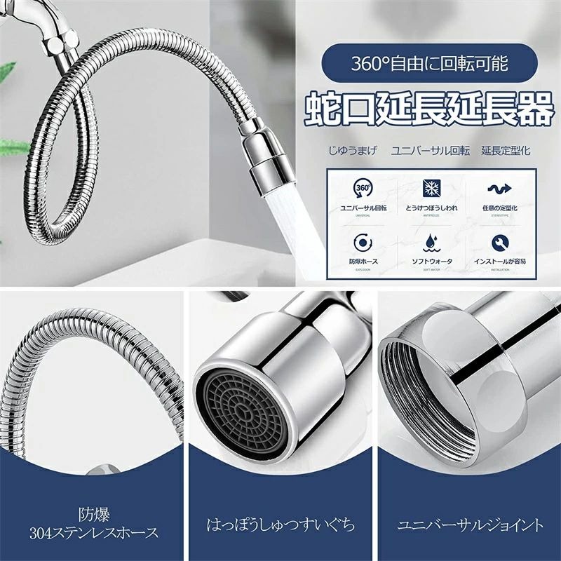 蛇口シャワーは、任意の角度で回転できます。、水流の方向を自由に調整できる。可動式のキッチン蛇口タップヘッドは、簡単かつ迅速に設置できます。便利で柔軟性があり、時間を節約できます。 延長ホースはどの角度でもその位置を維持し、皿、野菜、果物を両手で掃除できるので、掃除の利便性が向上します。 高品質の真糸とステンレス鋼材料から作られ、多層クロムめっき技術を使用し、耐久耐食性が強いです。 家庭用のキッチン、浴室、洗面台、お手洗いの蛇口に適している。台所の蛇口、流しの蛇口、水槽の蛇口、トイレの蛇口、浴室の蛇口などに取り付けることができます。