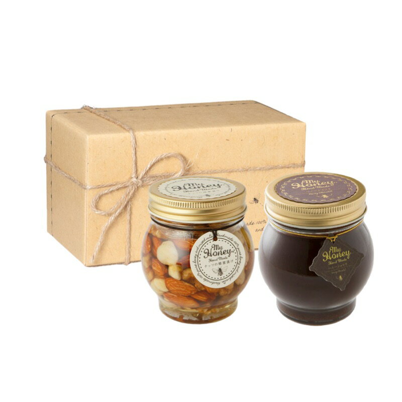 【秋の贈り物応援★1000円OFFクーポン発行中】ナッツの蜂蜜漬けL(200g) + ハニーショコラL(200g) / ナチュラルクラフトボックス(M) + 麻紐リボン + 手提げ袋 【当日出荷可能】