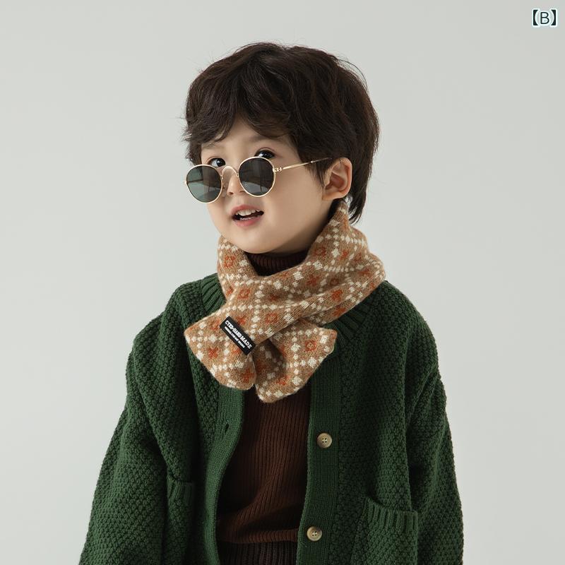 マフラー キッズ 男の子 女の子 ネックウォーマー 秋冬 防寒 暖かい 韓国 防風 おしゃれ レトロ ホワイト イエロー オレンジ