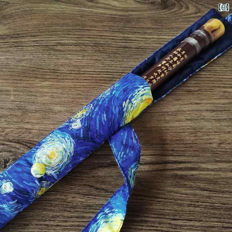 横笛 袋 ケース 星柄 青 習い事 レッスン 肩掛け 子供 洞箏 尺八 竹笛 保護 カバー 持ち運び 収納 便利 携帯 保存 耐摩耗性 紐つき 厚手 D C G F E調 二重 プリント 調整可能