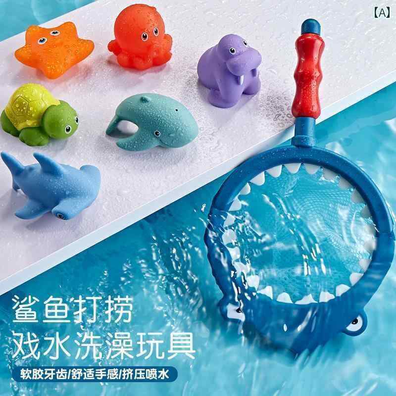 水遊び おもちゃ ベビー 赤ちゃん 子供 女の子 男の子 釣り フィッシング 魚すくい 玩具 色が変わる 噴射 柔らかい かわいい お風呂 プール プレゼント 0-10歳 サメネット たこ ヒトデ 青 緑