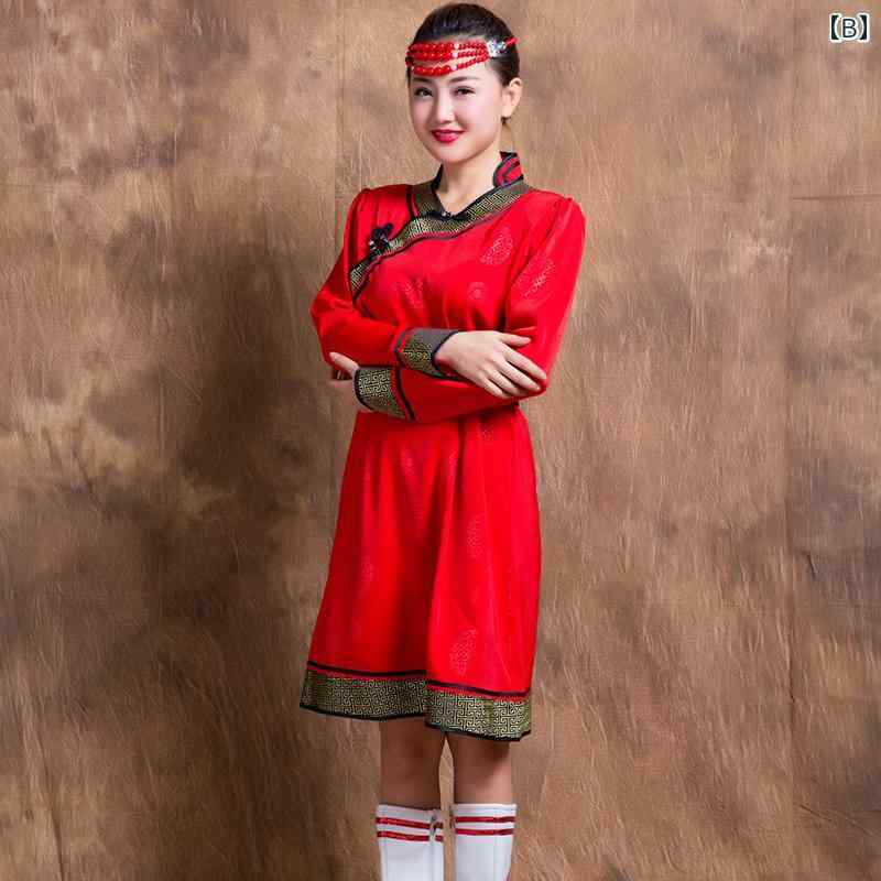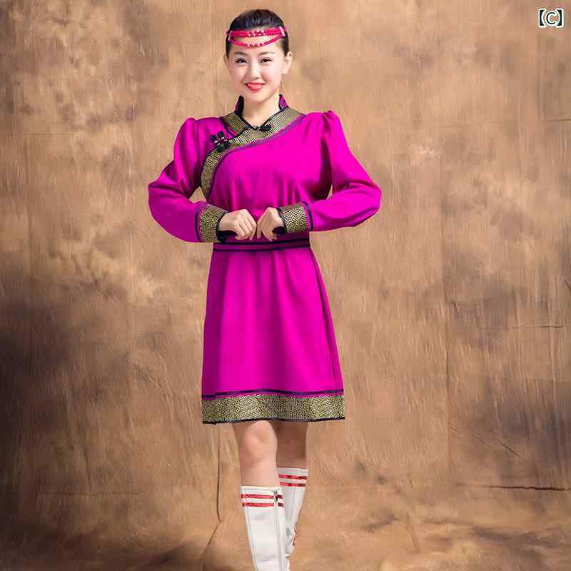 モンゴル 衣装 民族 舞踊 レディース ローブ 制服 パフォーマンス 服 コスプレ ホワイト レッド パープル