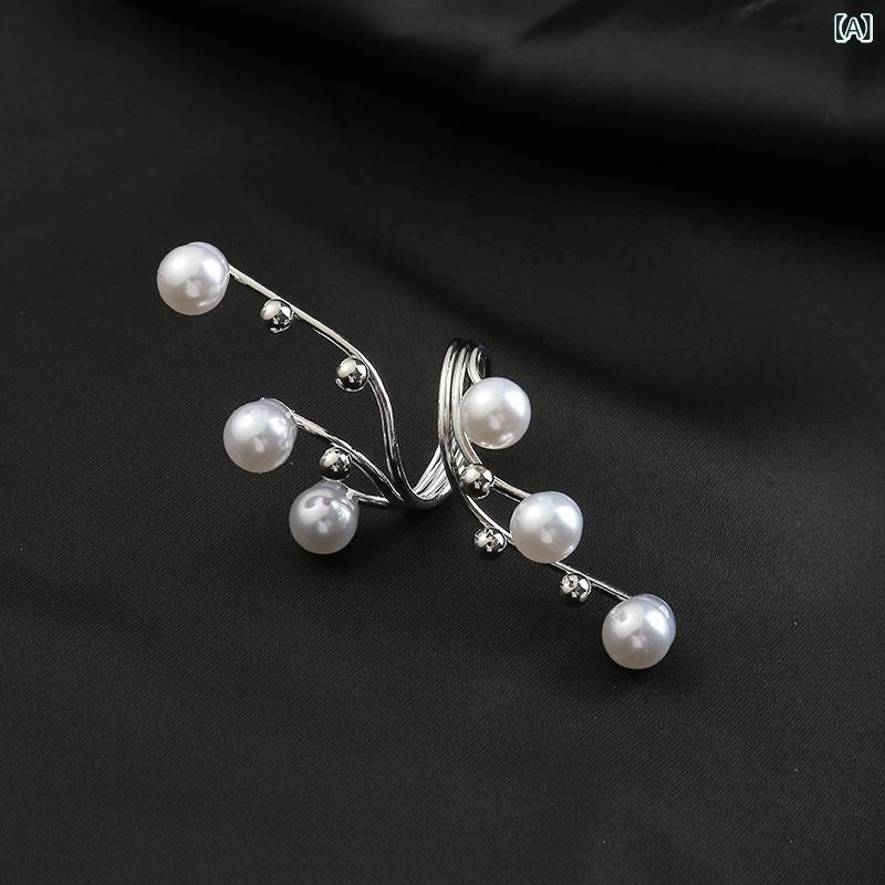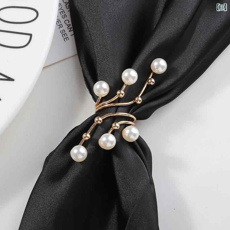 スカーフリング レディース スプリング式 パール 幾何学デザイン シンプル エレガント 合金製 アクセサリー シルバー ゴールドカラー 上品 万能 通勤 デイリーユース インフルエンサー(x2)