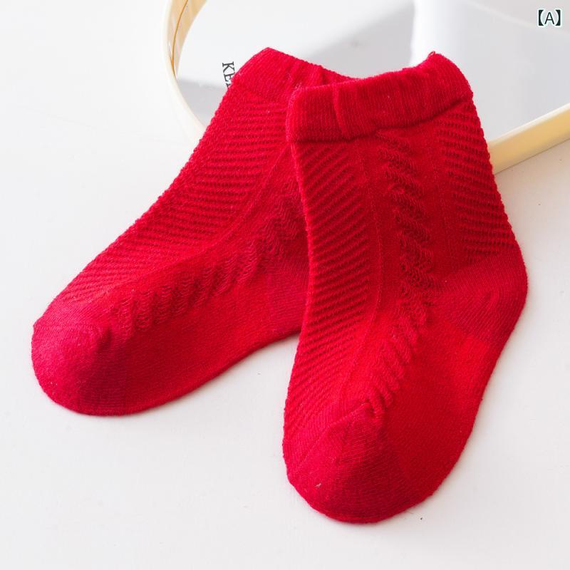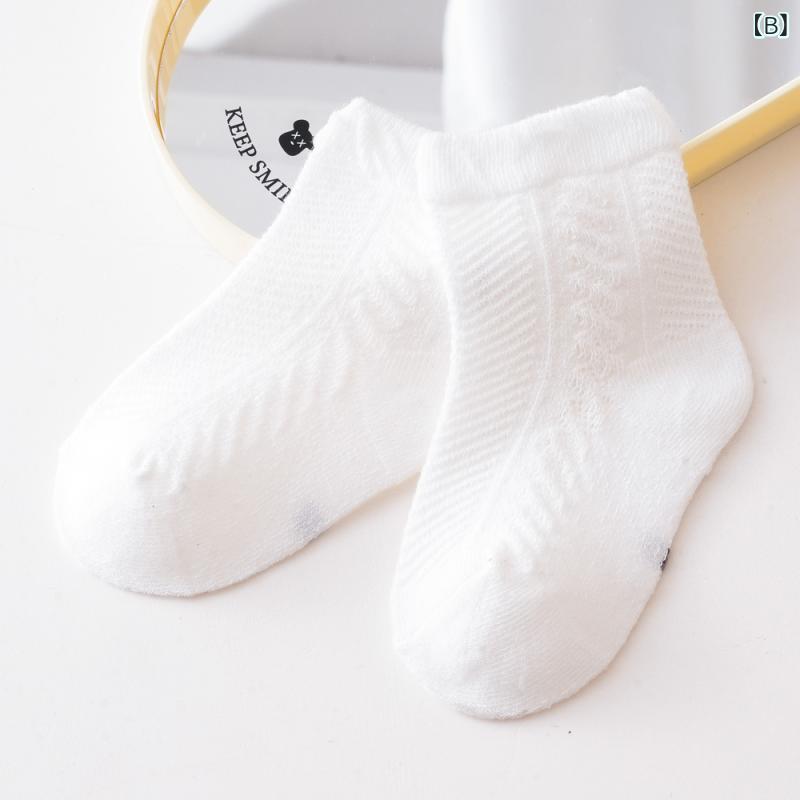 べビーソックス 男女兼用 乳幼児用 薄手 通気性 メッシュ 吸湿速乾 春夏 純色 かわいい 綿素材 中筒丈 透かし編み ソフト 快適(x2)