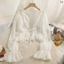 ・主な素材: シフォン、ポリエステル・デザイン: フリル、リボン、無地・シルエット: レギュラー・袖タイプ: フリルスリーブ・袖丈: 長袖・カラー展開: ホワイト、アプリコット、ブラック、A18ホワイト・サイズ展開: XXS、S、M、L、XL、2XL・スタイル: エレガントカジュアル、アーバン・開閉タイプ: フロントオープン・素材含有率: 95%以上・性別: レディース