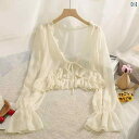 UVカットカーディガン レディース シフォン 薄手 ゆったり 長袖 ショート丈 フリル リボン エンジェルスリーブ ショール風 紫外線対策 羽織り 春夏 通勤 オフィス 無地