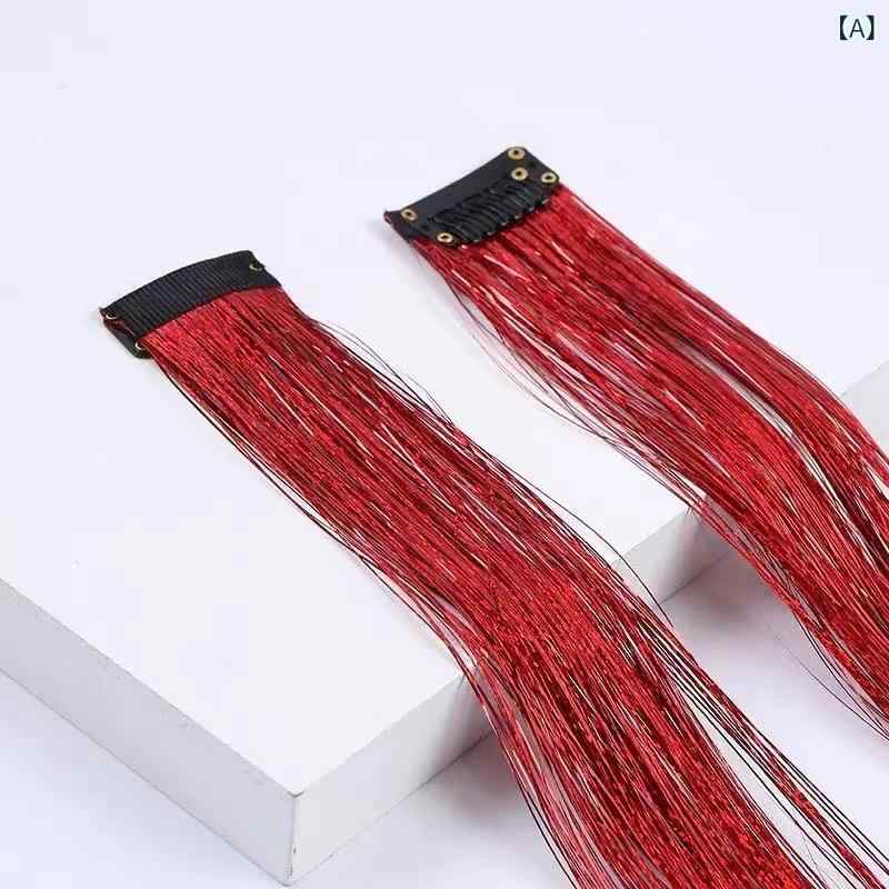 ヘアエクステ レディース 七色 ラメ入り キラキラ ゴールドライン シームレス クリップ式 ロング ストレート 50cm 発表会 イベント ダンス コスプレ 付け毛