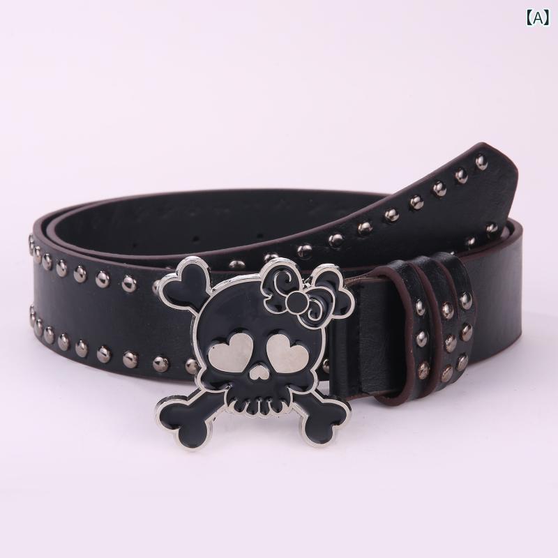 ベルト レディース パンク ロック Y2K ヒップホップ ストリート系 スカルスタッズ メタル 調節可能 男女兼用 個性的 おしゃれ 合金バックル ヴィンテージ加工(x2)