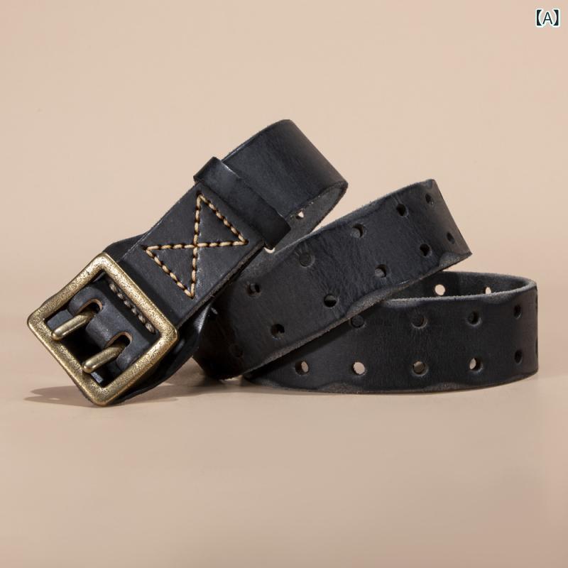 ベルト メンズ 本革 牛革 ヌメ革 幅広 レトロ ヴィンテージ 銅製スクエアバックル ピンバックル アメカジ 大人カジュアル 長め ロングサイズ対応(x2)