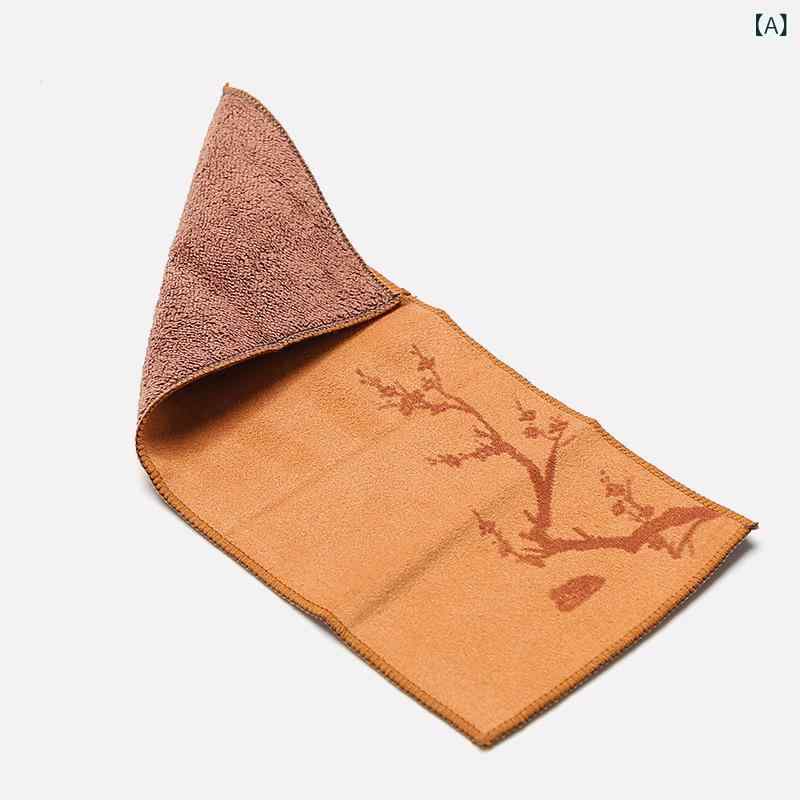 茶巾 優れた吸水力 速乾性 綿麻素材 上質 厚手生地 繊細な刺繍 禅意 中国風 桃の花柄デザイン 功夫茶器 茶道具 茶席 お稽古 茶器台 テーブルマット 拭き取り用 小物(x2)