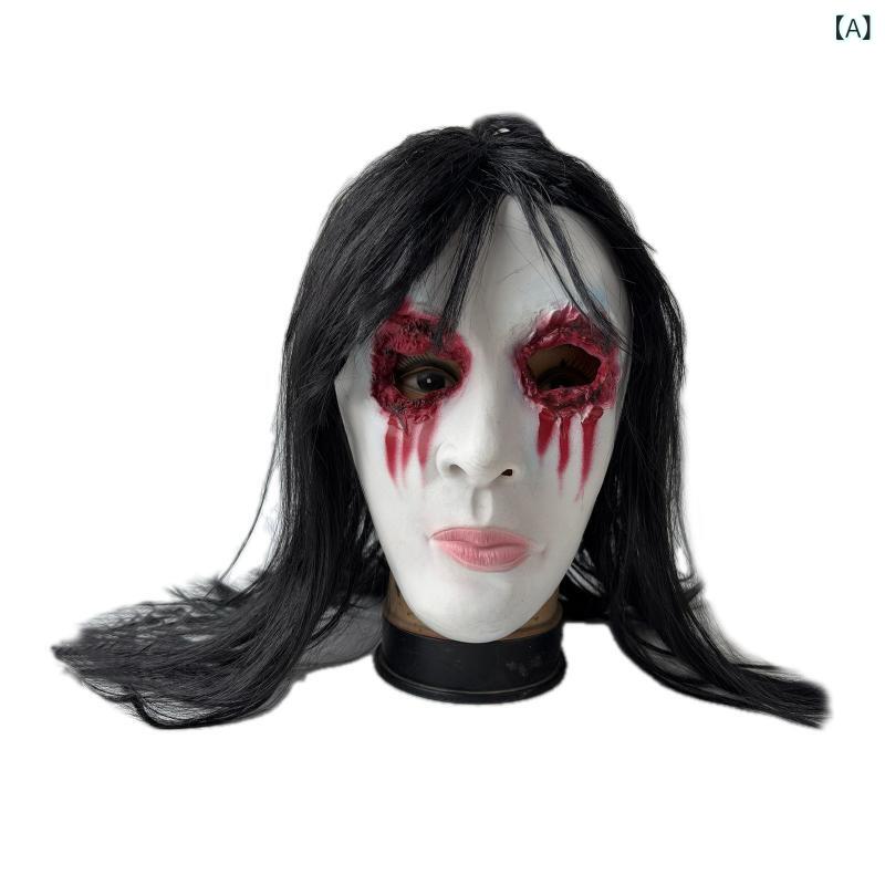 コスプレ マスク 男女兼用 ハロウィン ホラー お化け屋敷 密室脱出 NPC 仮装 貞子 怖い顔 鬼顔 黒髪 流血 イベント パーティー グッズ