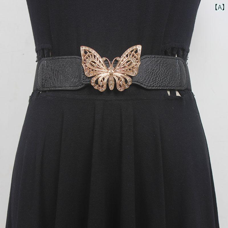 ベルト レディース 伸縮性 ストレッチ ラインストーン PUレザー ウエストマーク 自動バックル ファッション小物 コート ワンピース ドレス スカート オフィス カジュアル 上品 フォーマル