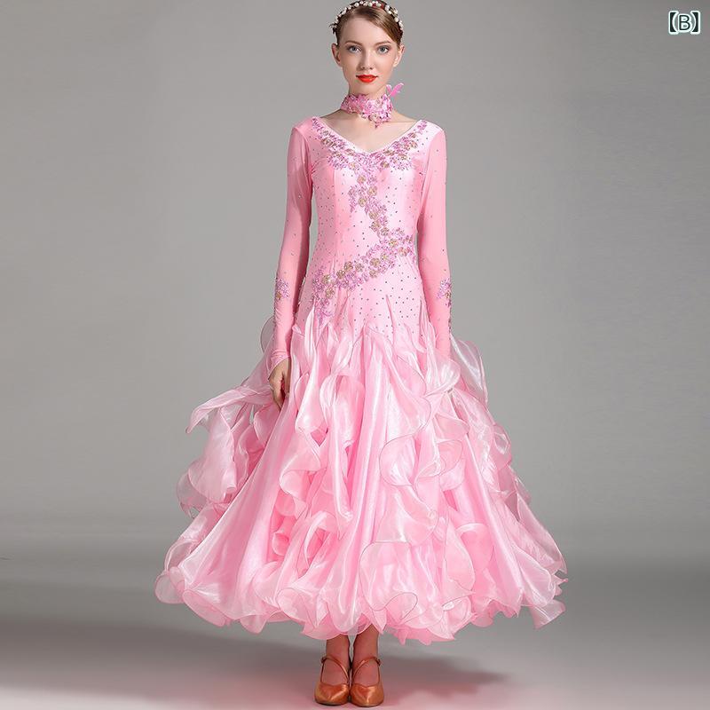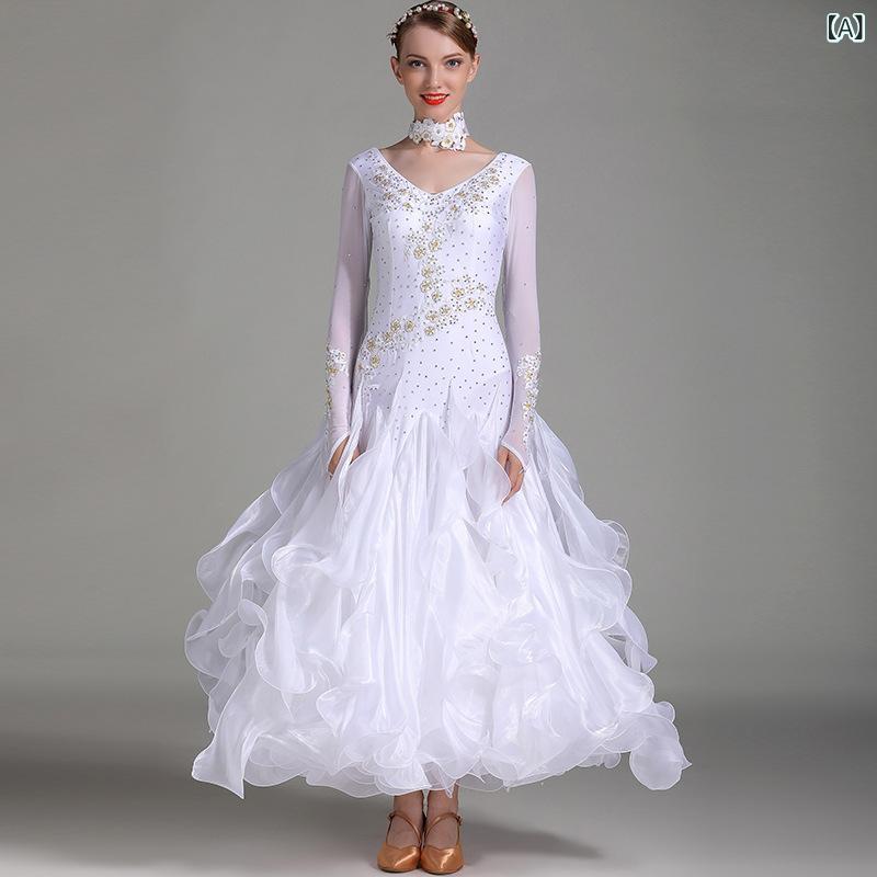 社交ダンスドレス レディース 女性用 豪華 ラインストーン モダン ポリエステル 発表会 競技会 パーティー パフォーマンス 練習着 エレガント ストレッチ
