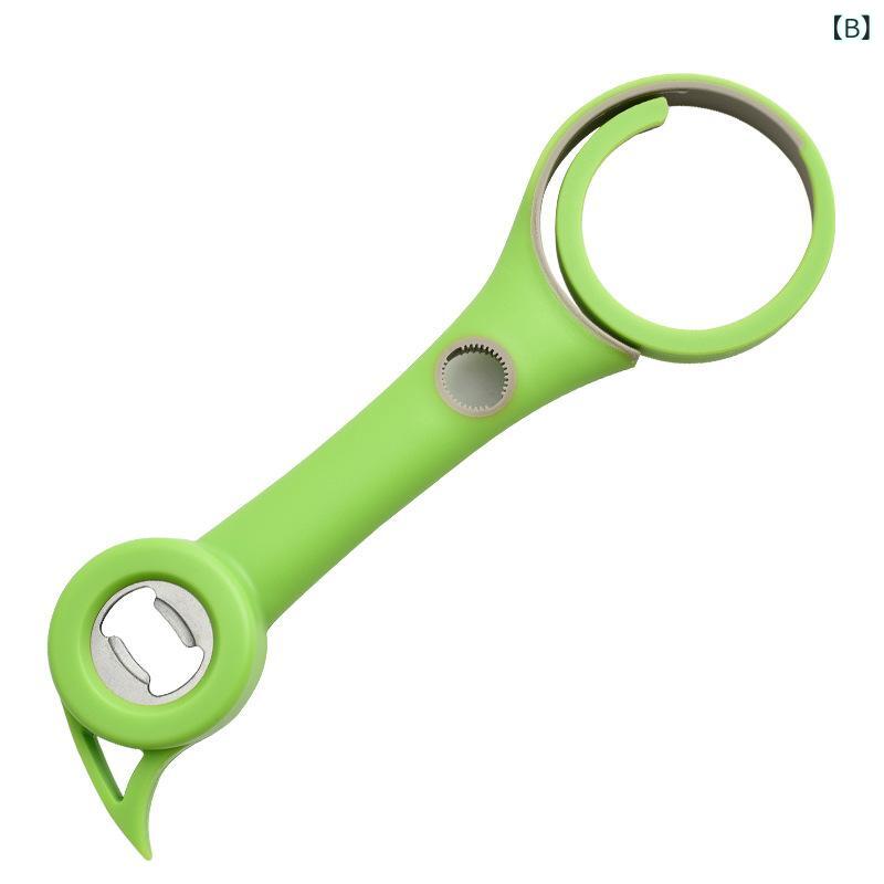 栓抜き 多機能 四合一 缶切り プルタブ開け スクリューキャップ開け ビール瓶開け プラスチック製 簡単 家庭用 キッチン雑貨 便利グッズ 選べる2色 赤 緑