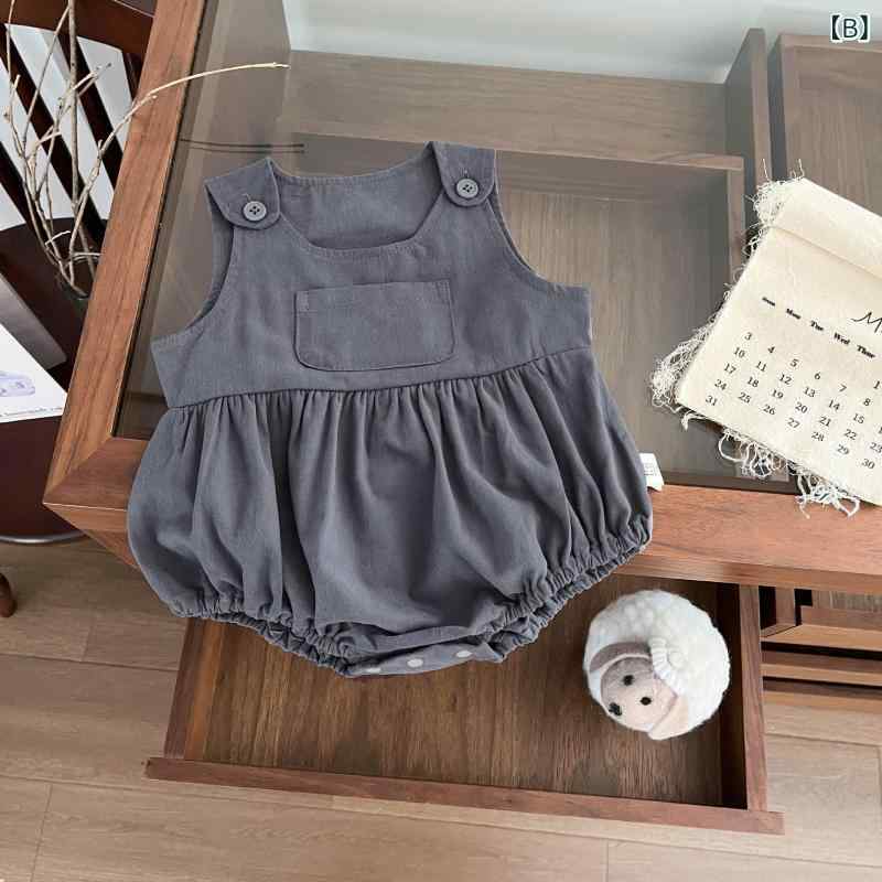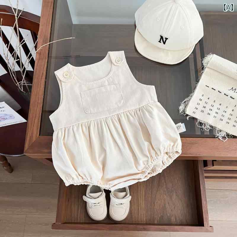 ロンパース ベビー 春秋 韓国風 かわいい ポケット ノースリーブ 綿100% おしゃれ ゆったり 着回し ユニセックス フードなし スナップボタン 三角