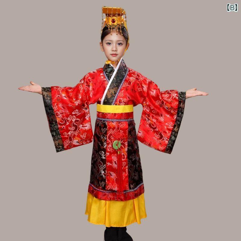漢服 子供 男の子 本格的な皇帝衣装 龍袍 皇太子 王様 舞台衣装 時代劇 発表会 イベント コスチューム 再生繊維使用 黄色 赤色 黒色 100cmから180cm対応