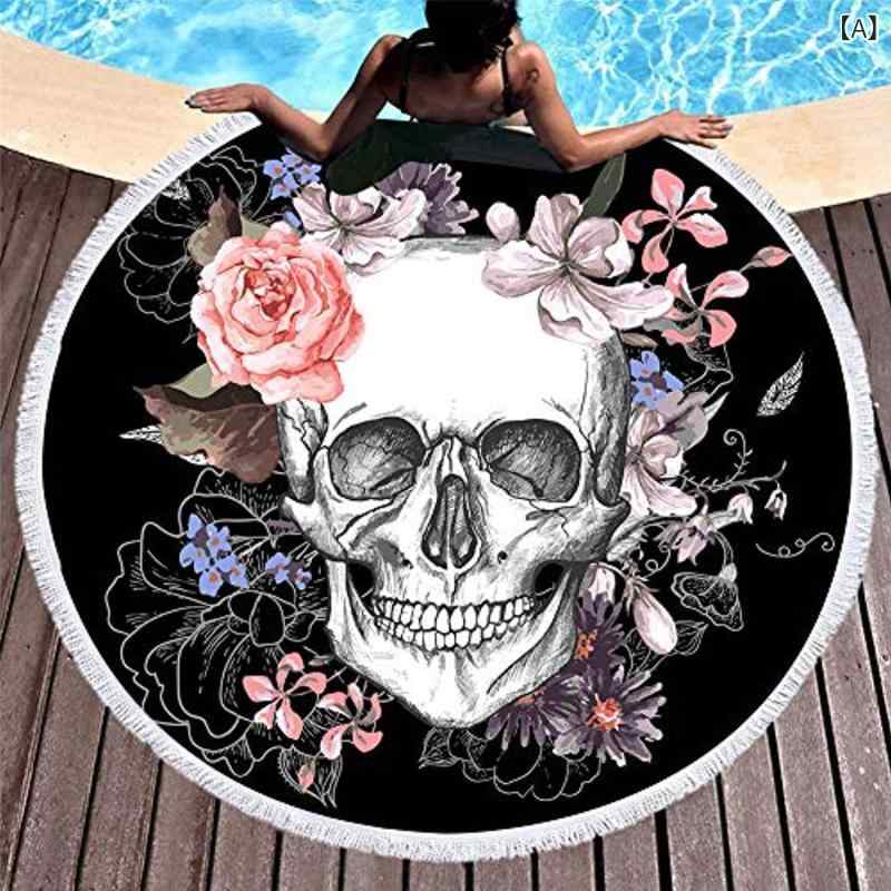 ビーチタオル バスタオル マイクロファイバー 吸水速乾 大判 円形 シュガースカル 花柄 フリンジ付き ピクニック レジャーシート ヨガマット テーブルクロス マルチカバー