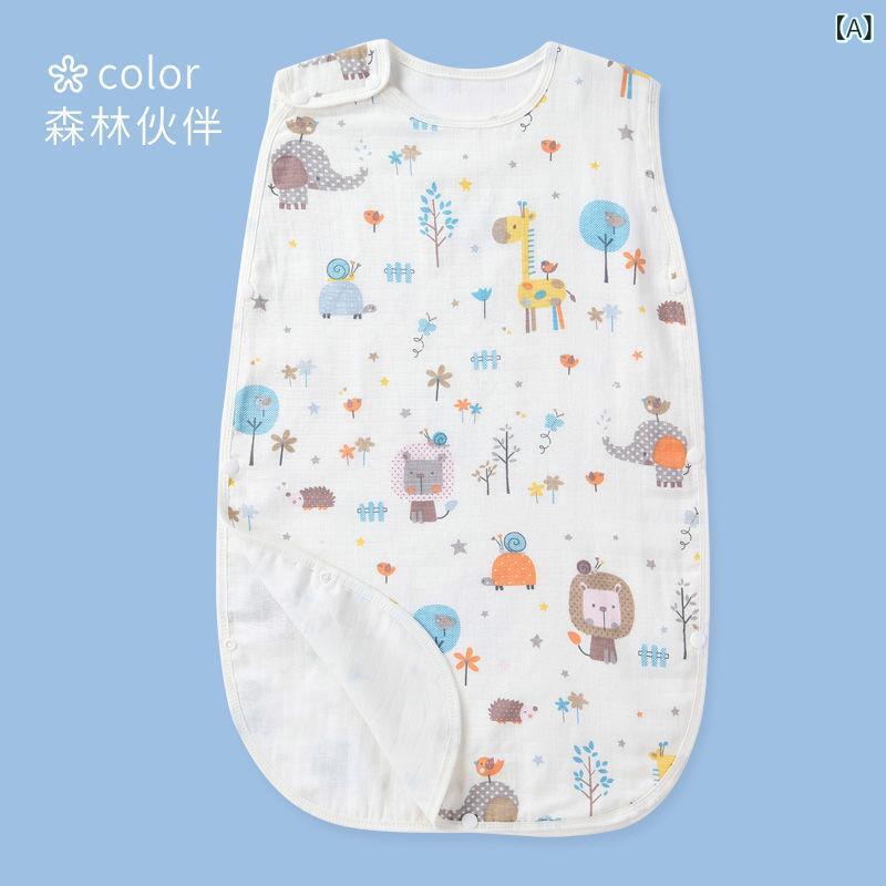 スリーパー ベビー キッズ 女の子 新生児 幼児 夏用 薄手 綿100% ガーゼ 袖付き 蹴り出し防止 寝冷え対策 お腹保護 刺繍 動物柄 総柄