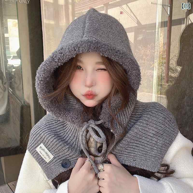 ニット帽 レディース 防寒 保温 耳まで暖かい ネックウォーマー一体型 バラクラバ 冬用 アクリル素材 ペア お揃い カジュアルスタイル
