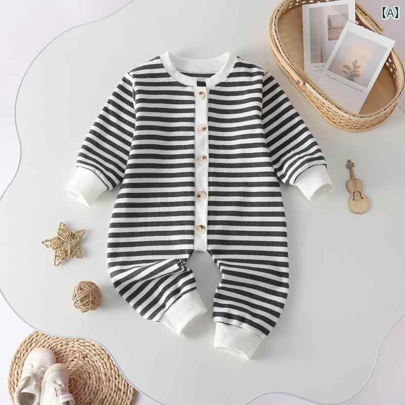 ・主な素材: 綿100%・対象年齢: 新生児 (0〜1歳、身長80cm以下)・性別: 男児・袖丈: 長袖・フード: なし・厚み: 通常・開閉方式: シングルボタン・スタイル: カジュアル・タイプ: ロンパース・カラー展開: ダークグレー、キャメル・サイズ展開: 66cm、73cm、80cm、90cm・カテゴリ: ロンパース、カバーオール