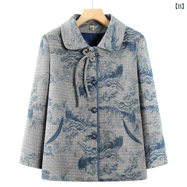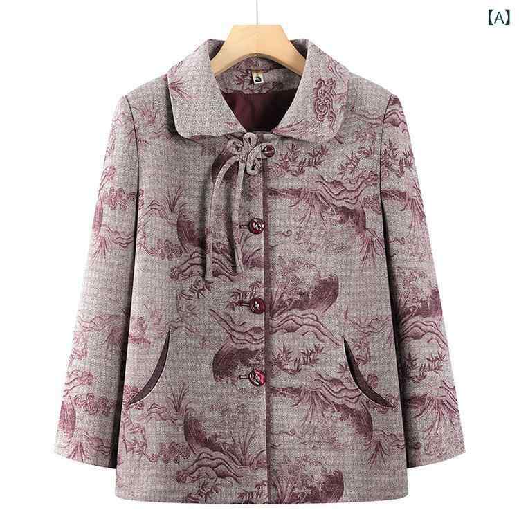 カーディガン レディース シニア ミセス 祖母 ママ向け 春秋 アウター 羽織り 新中式 国風 花柄 普段着 綿ポリエステル混 ポケット付き 赤 青 上品 エレガント レトロ