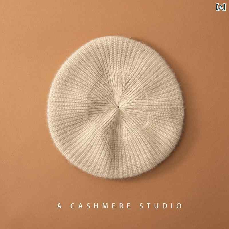 ベレー帽 レディース 保温 暖かい 秋冬 カシミヤ ウール ニット 韓国風 おしゃれ クラシック 定番 着回し 通勤 エレガント シンプル 上品 丸いトップ フリーサイズ ブルー パープル