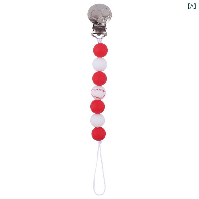おしゃぶりホルダー ベビー シリコン製 落下防止ストラップ 赤ちゃん 球技柄 スポーツボールデザイン 歯固め おもちゃ 紛失防止 男の子 女の子 出産祝い プレゼント ギフト 安全 BPAフリー