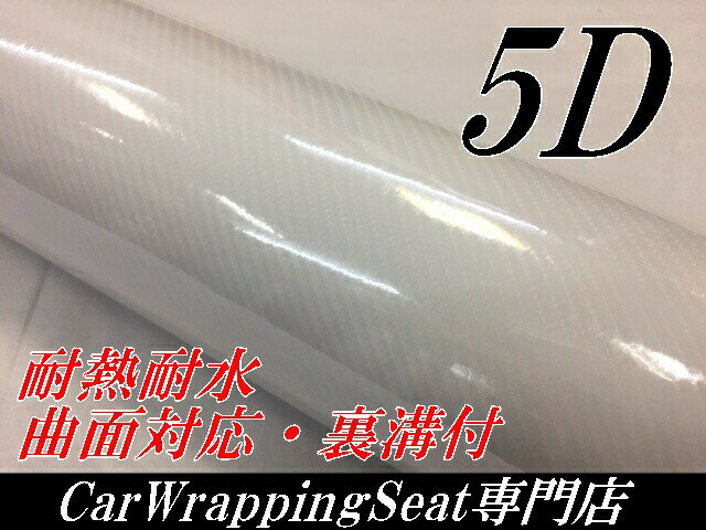 5Dカーボンシート 152cm×50cm ホワイト カーラッピングシートフィルム 4Dベース 耐熱耐水曲面対応裏溝付 カッティングシート 艶あり白 内装パネル