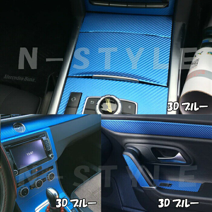 3Dカーボンシート 152cm×30cm ブルー カーラッピングシートフィルム 耐熱耐水曲面対応裏溝付 カッティングシート