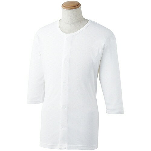 【メール便送料無料】川本産業 カワモト ウィズエール ワンタッチ肌着 八分袖紳士 Mサイズ 1枚入<前開き><綿100%><介護・療養・リハビリに>