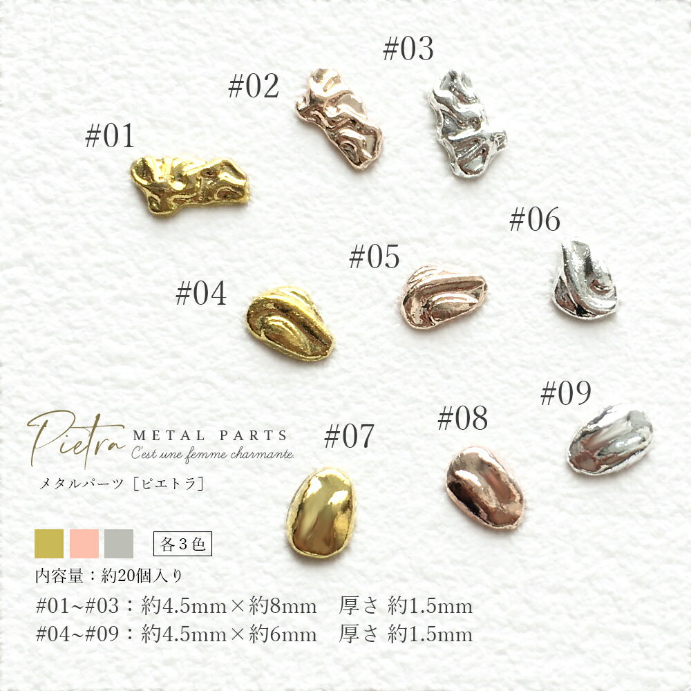 ネイルパーツ メタルパーツ メタリックパーツ 約20個入り ゴールド シルバー ピンクゴールド 全9種 Pietra-ピエトラ-