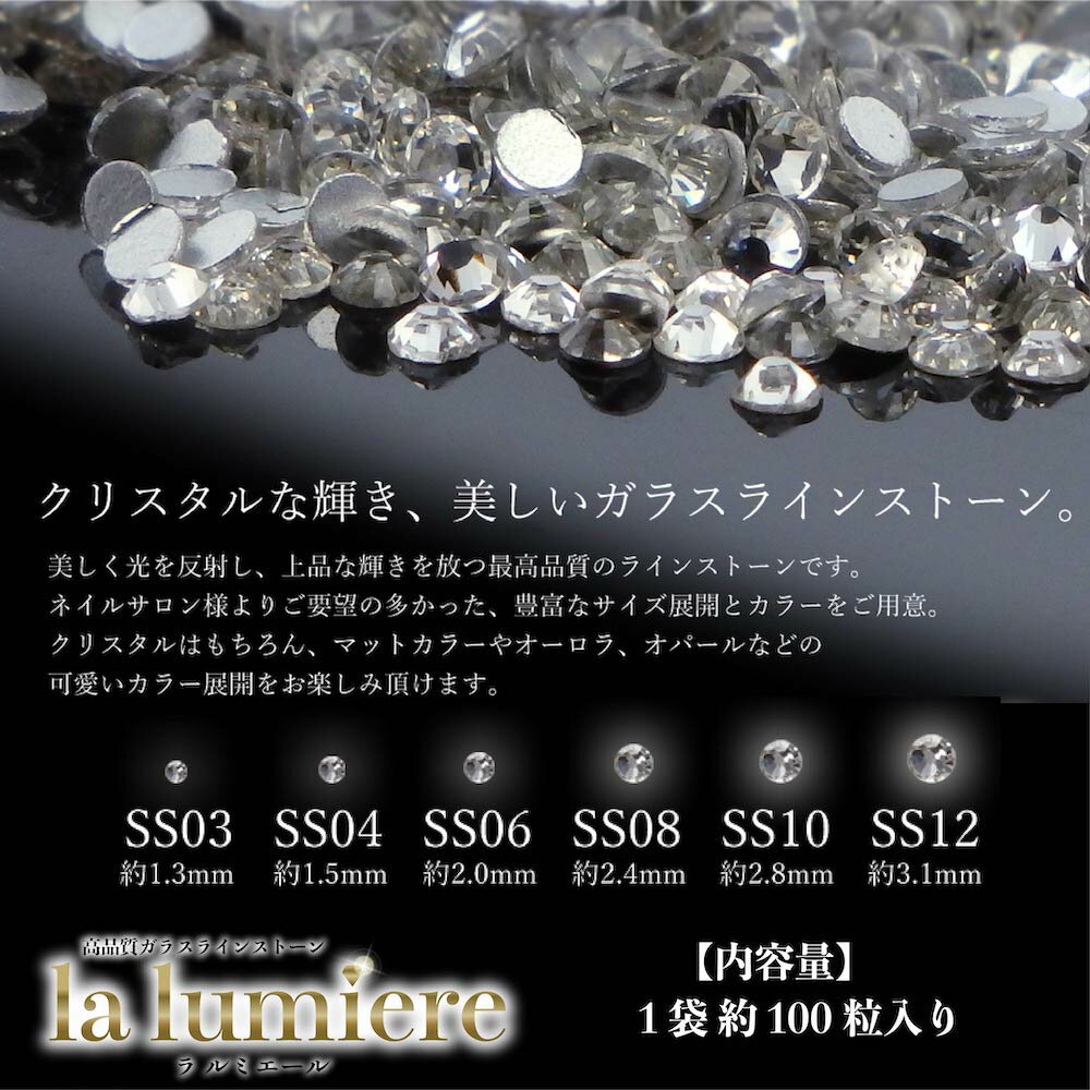 マラソン★最大20%OFFクーポン★ラインストーン 高品質 ガラスラインストーン【 la lumiere -ラルミエール- 約100粒 全6サイズ】ss03 ss04 ss06 ss8 ss10 ss12 |オーロラ ジェルネイル ネイルパーツ ネイルアート ネイル材料 キラキラ ストーン ラメ ビジ