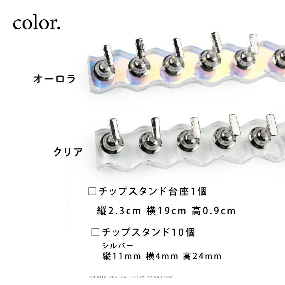 ネイルチップスタンド 土台【 ネイルチップスタンド / ロングウェーブ 2色 】 10個セット 両手分 両手 10本 ロング ホワイト クリア オーロラ マグネットタイプ マグネット スタンド ネイルツール チップスタンド ネイルチップ ジェルネイル ネイルマップ