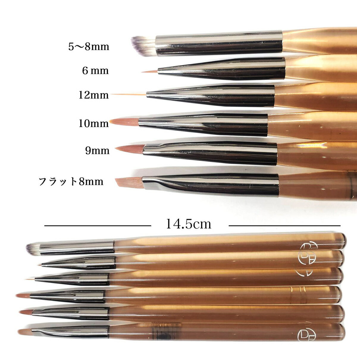 【アートジェルブラシ6本セット】ネイルパーツ ネイルグッズ ネイル用品 ネイル ネイルアート ブラシ ジェル グラデーション ライナー フラット ポイント 人気 おすすめ 可愛い かわいい