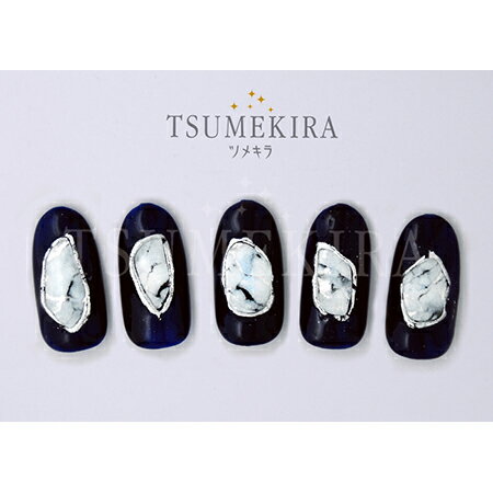 ネイルアート 高粘着 ネイルシール マーブルパーツ ネイルシール ツメキラ 【noble】marble parts white×silver NO-MAR-101(ジェル専用)