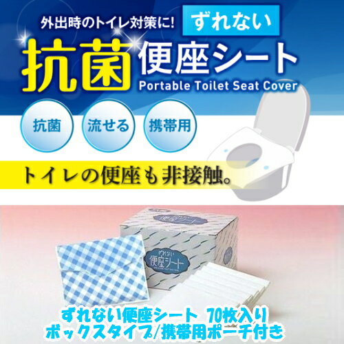 トイレに流せる ずれない 便座シート 70枚入り ボックスタイプ 携帯用ポーチ付き 抗菌 携帯 ズレない 来客 旅行 お出かけ 出張 トイレ用品 清掃用品